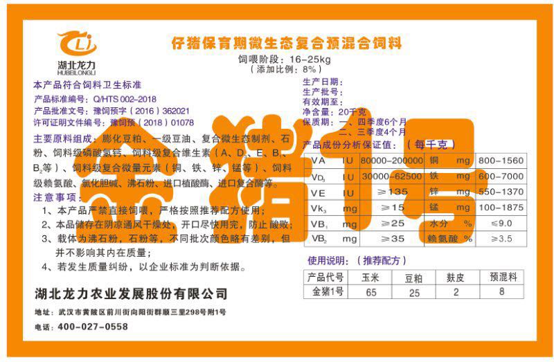 湖北龍力農(nóng)業(yè)發(fā)展股份有限公司坐落于武漢市黃陂區(qū)前川街向陽(yáng)街群順三里298號(hào)附1號(hào)。公司成立于2014年6月,公司自成立以來把“創(chuàng)全球最大養(yǎng)豬綜合服務(wù)”為企業(yè)愿景。致力于打造教保料品牌”作為公司發(fā)展的明確目標(biāo)。公司一直致力于豬營(yíng)養(yǎng)的研究和開發(fā),積極與國(guó)內(nèi)外高校和科研機(jī)構(gòu)合作,推廣養(yǎng)豬技術(shù)、動(dòng)物營(yíng)養(yǎng)新概念,向世界農(nóng)牧企業(yè)學(xué)習(xí)與合作。公司采用國(guó)內(nèi)先進(jìn)的生產(chǎn)工藝,選擇高精度電子配料秤,高均勻度、無殘留混合機(jī)等先進(jìn)設(shè)備....